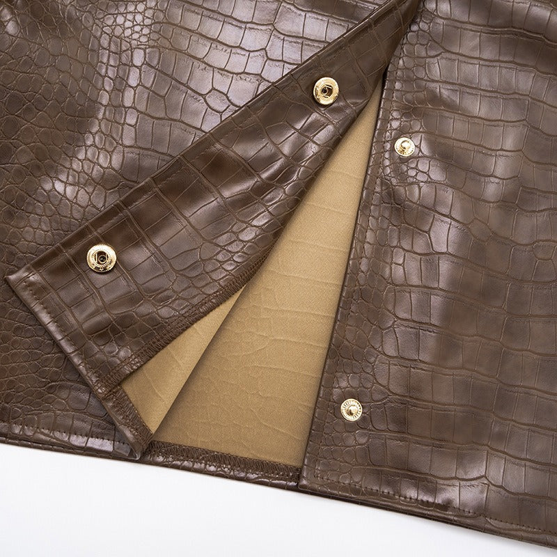 Long-Sleeved Leather Jacket